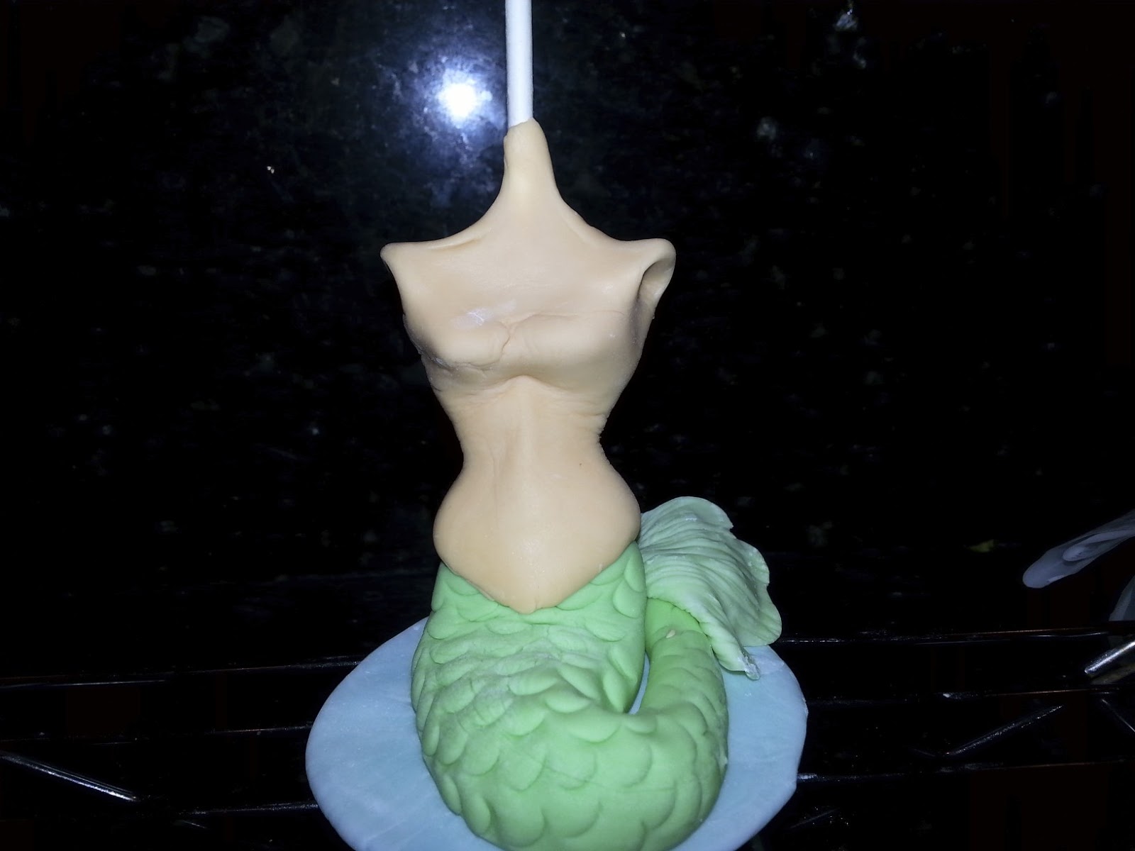 First, I put a lollipop stick in some gumpaste and let it dry. Then I made the tail and attached it to the stick.